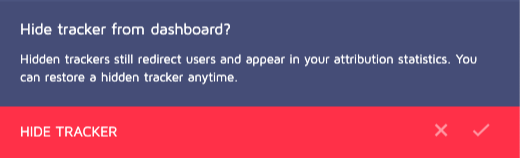 Clarify the dialog purpose. “Confirmation” is a filler word. “Hide tracker from dashboard?” explains what the user must confirm.