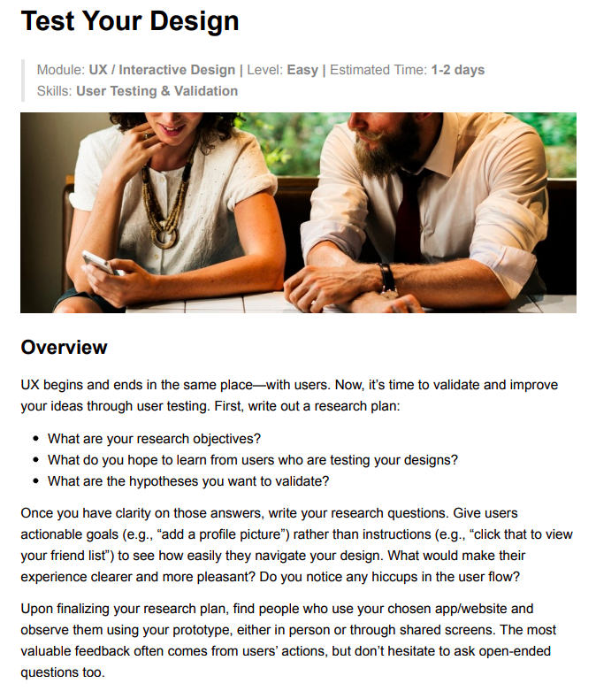 Created a landing page, student handbook, and Product Design curriculum with 30 UX/UI project briefs