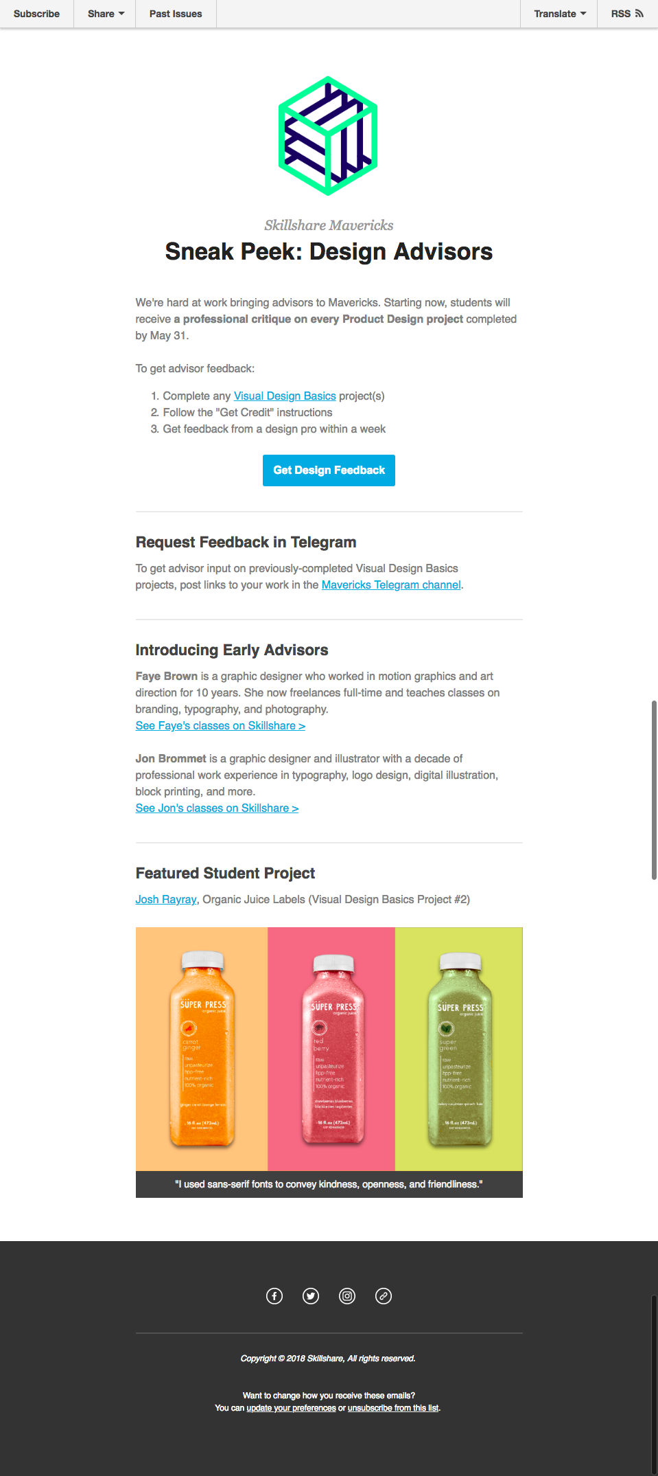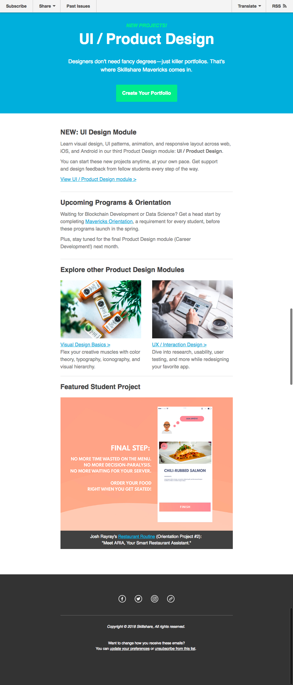 I sent Mavericks students weekly emails with program updates, project spotlights, and CTAs to participate in the curriculum.